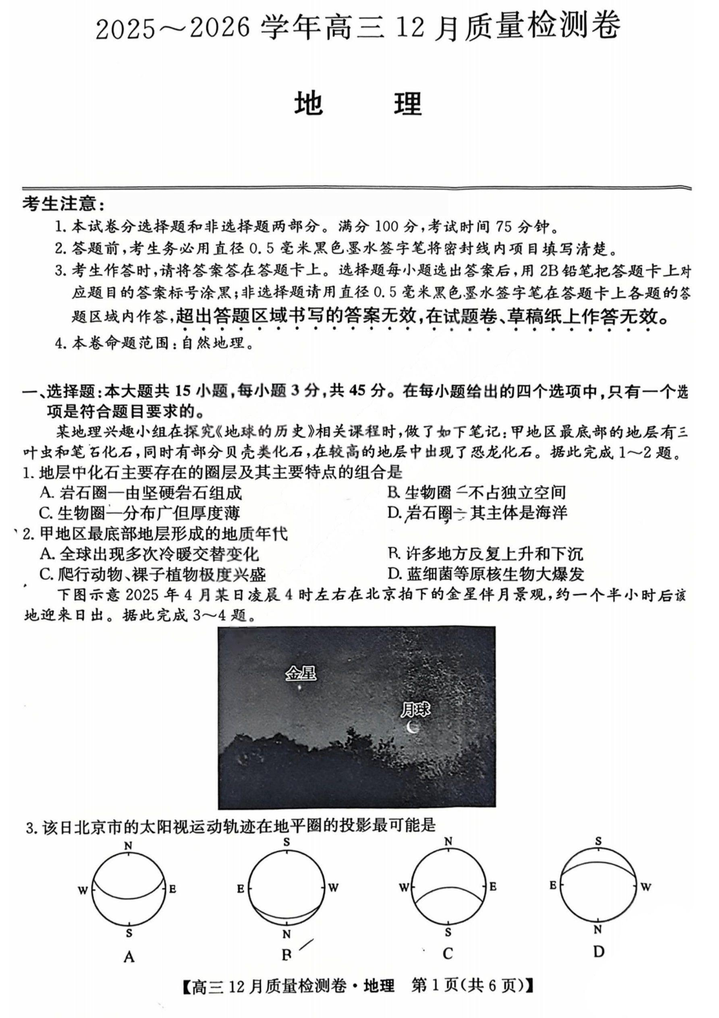 山西三晋卓越联盟2025-2026学年高三12月质量检测 地理试题(含答案).pdf