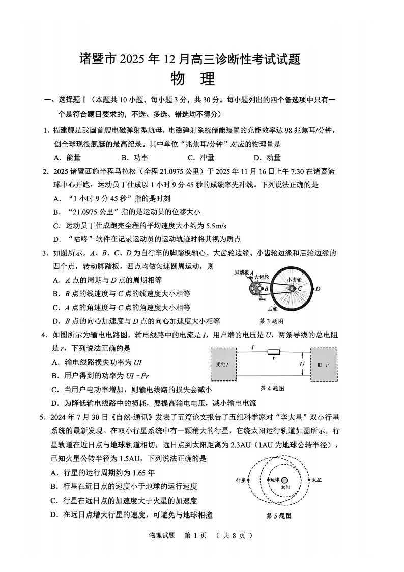 诸暨市2025年12月高三诊断性考试试题 物理.pdf