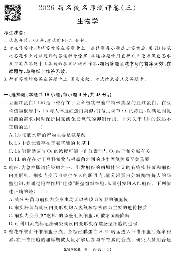 2026届名校名师测评卷(三)生物.pdf