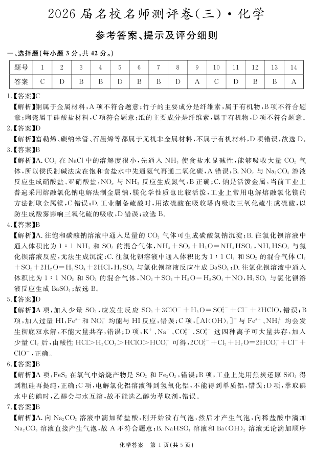 2026届名校名师测评卷(三)化学答案.pdf