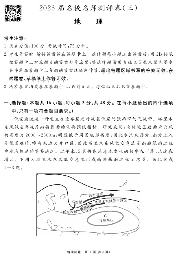2026届名校名师测评卷(三)地理.pdf