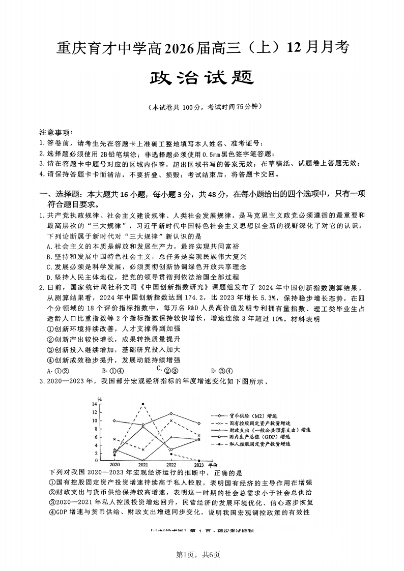 重庆育才中学高2026届高三(上)12月月考 政治.pdf
