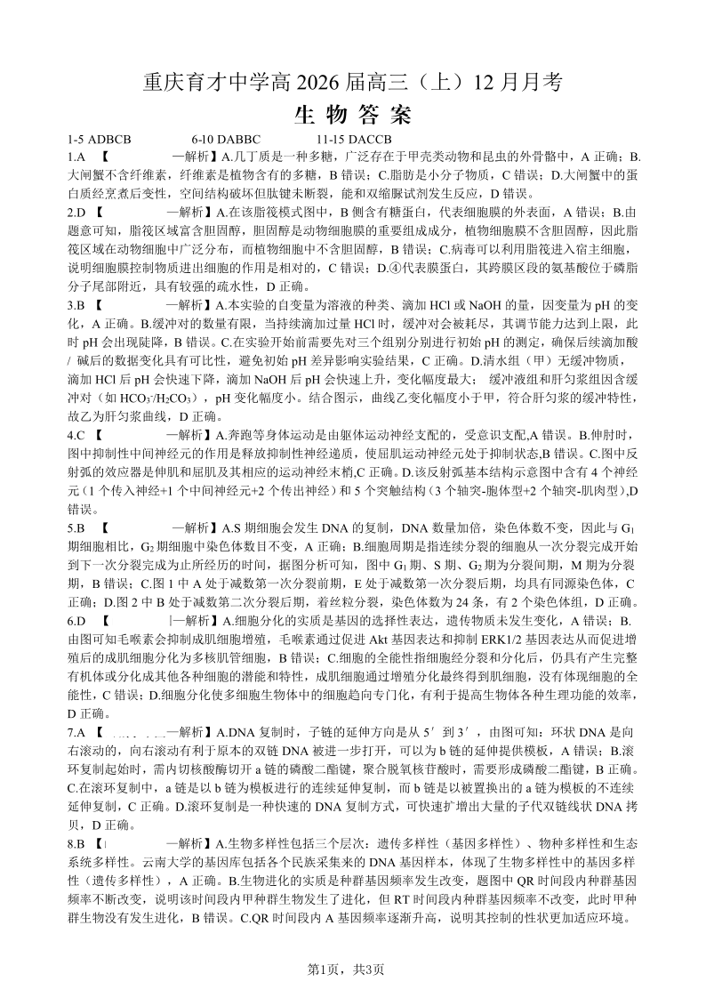 重庆育才中学高2026届高三(上)12月月考 生物答案.pdf