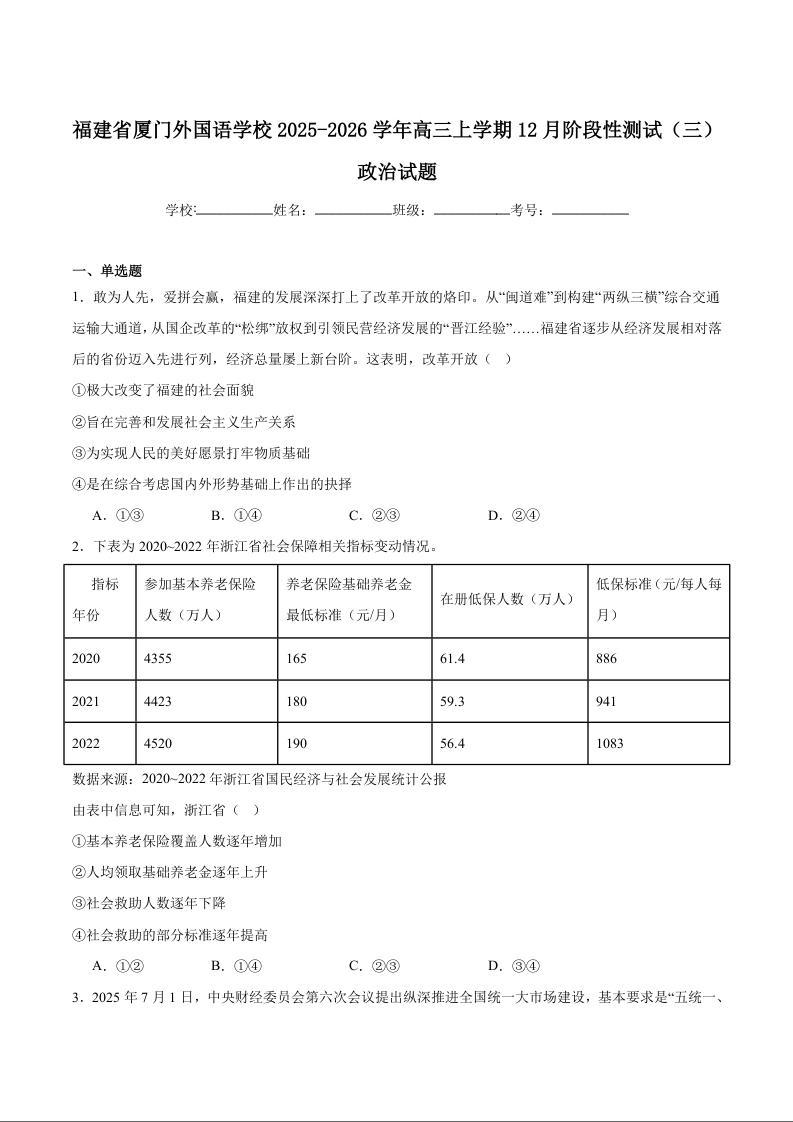 厦门外国语学校2025-2026学年高三第一学期12月月考 政治.docx