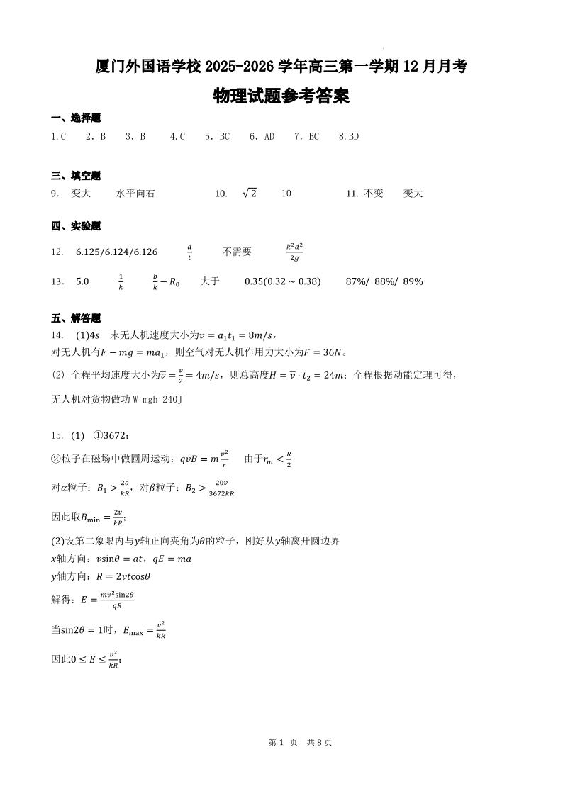 厦门外国语学校2025-2026学年高三第一学期12月月考 物理答案.pdf