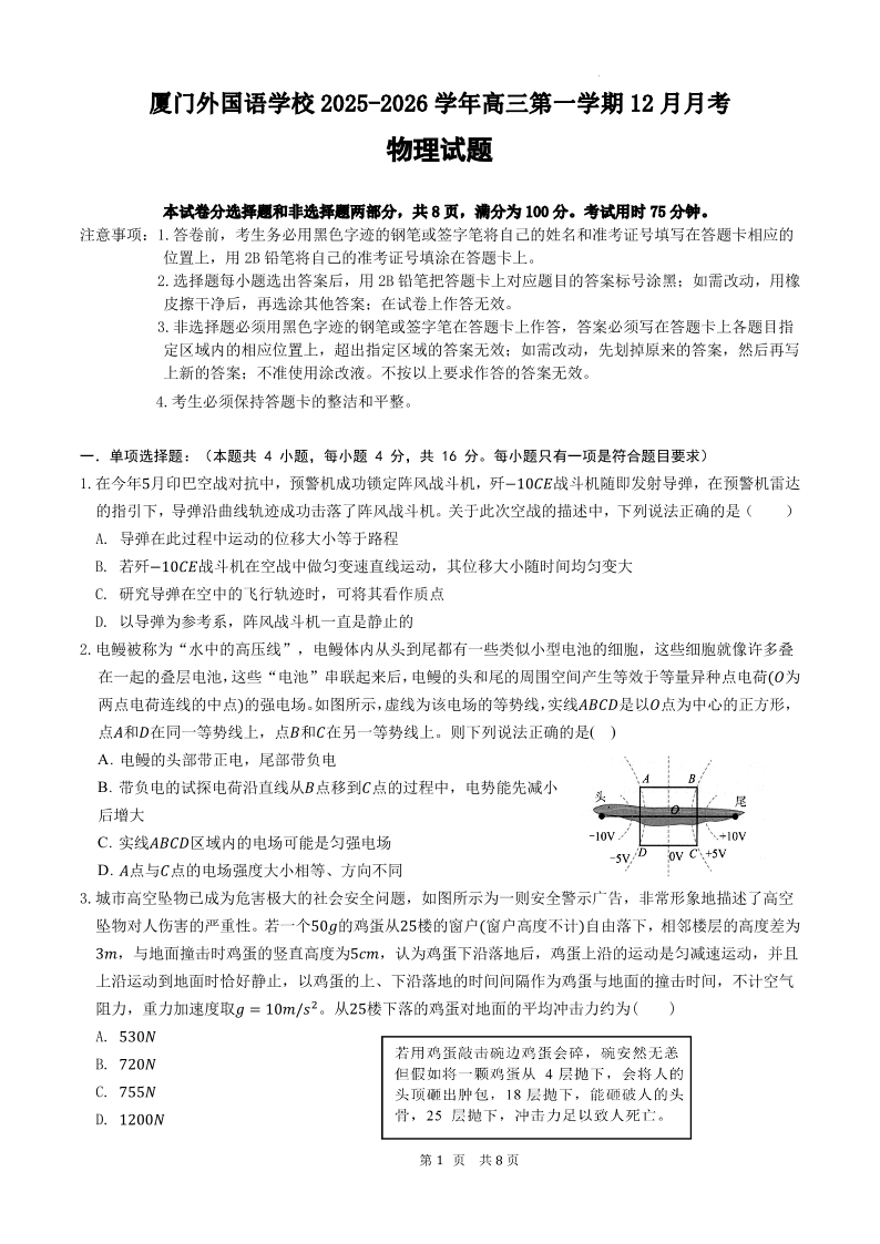 厦门外国语学校2025-2026学年高三第一学期12月月考 物理.pdf