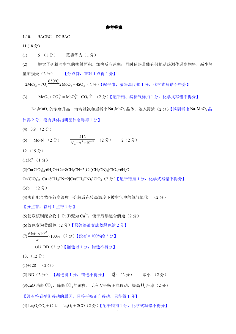 厦门外国语学校2025-2026学年高三第一学期12月月考 化学答案.pdf