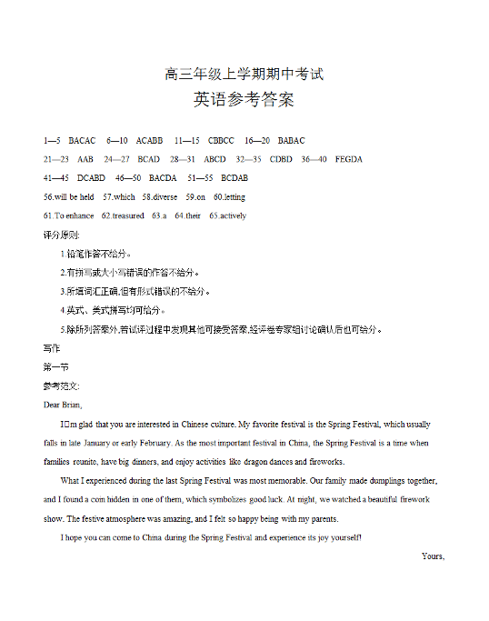 河北省2026届高三年级上学期期中考试 英语答案.pdf