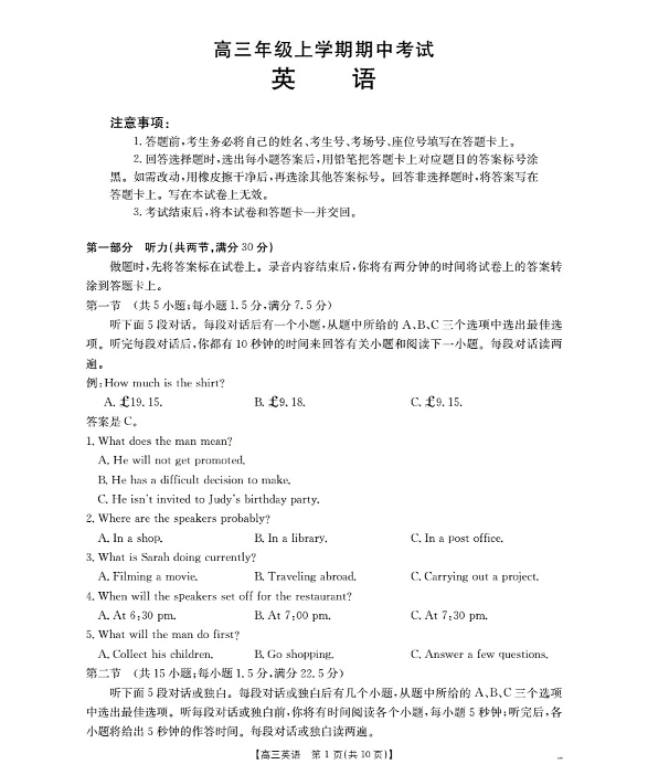 河北省2026届高三年级上学期期中考试 英语.pdf
