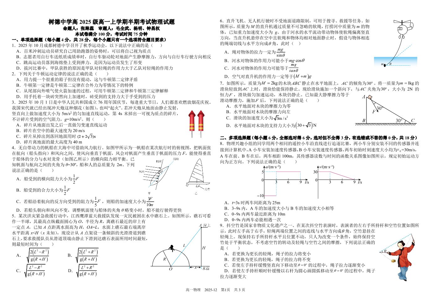 树德中学高2025级高一上学期半期考试 物理试题(含答案).pdf
