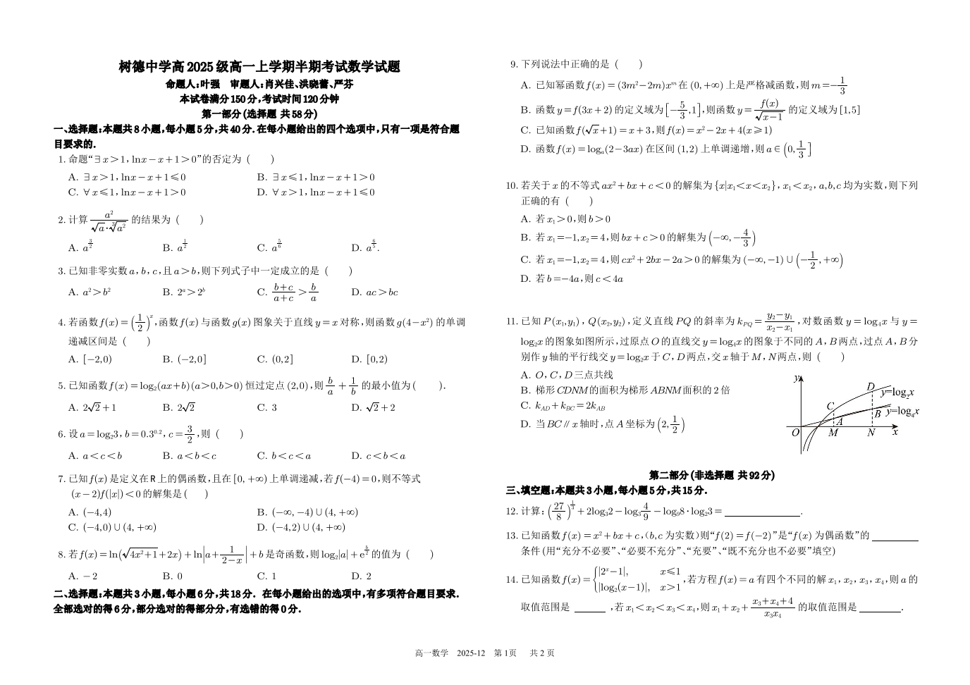 树德中学高2025级高一上学期半期考试 数学试题(含答案).pdf