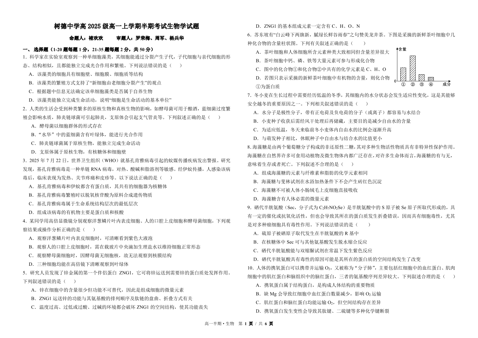 树德中学高2025级高一上学期半期考试 生物试题(含答案).pdf