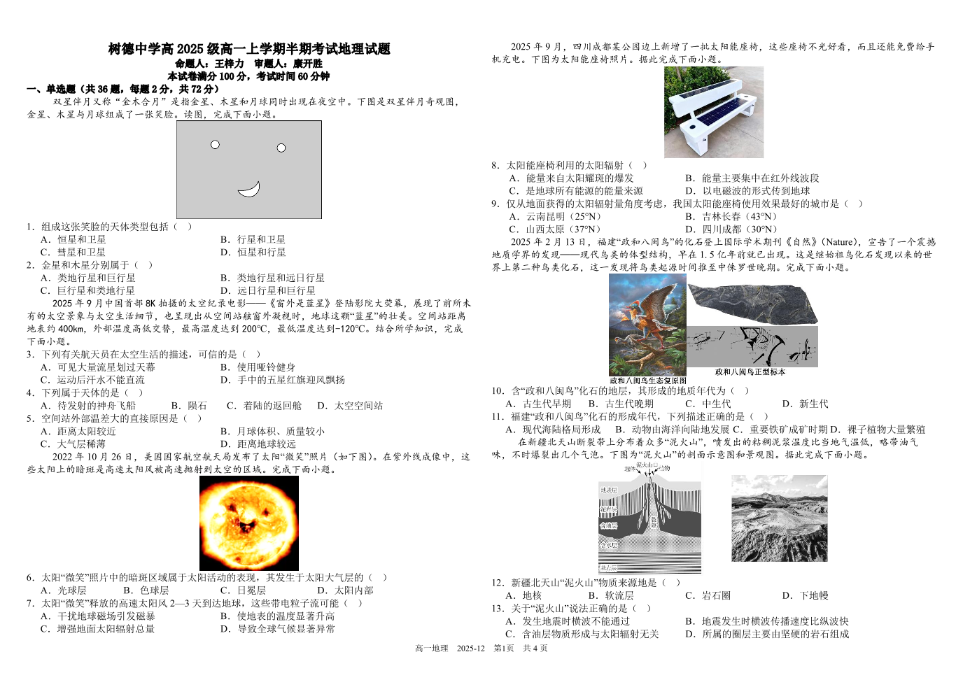 树德中学高2025级高一上学期半期考试 地理试题(含答案).pdf
