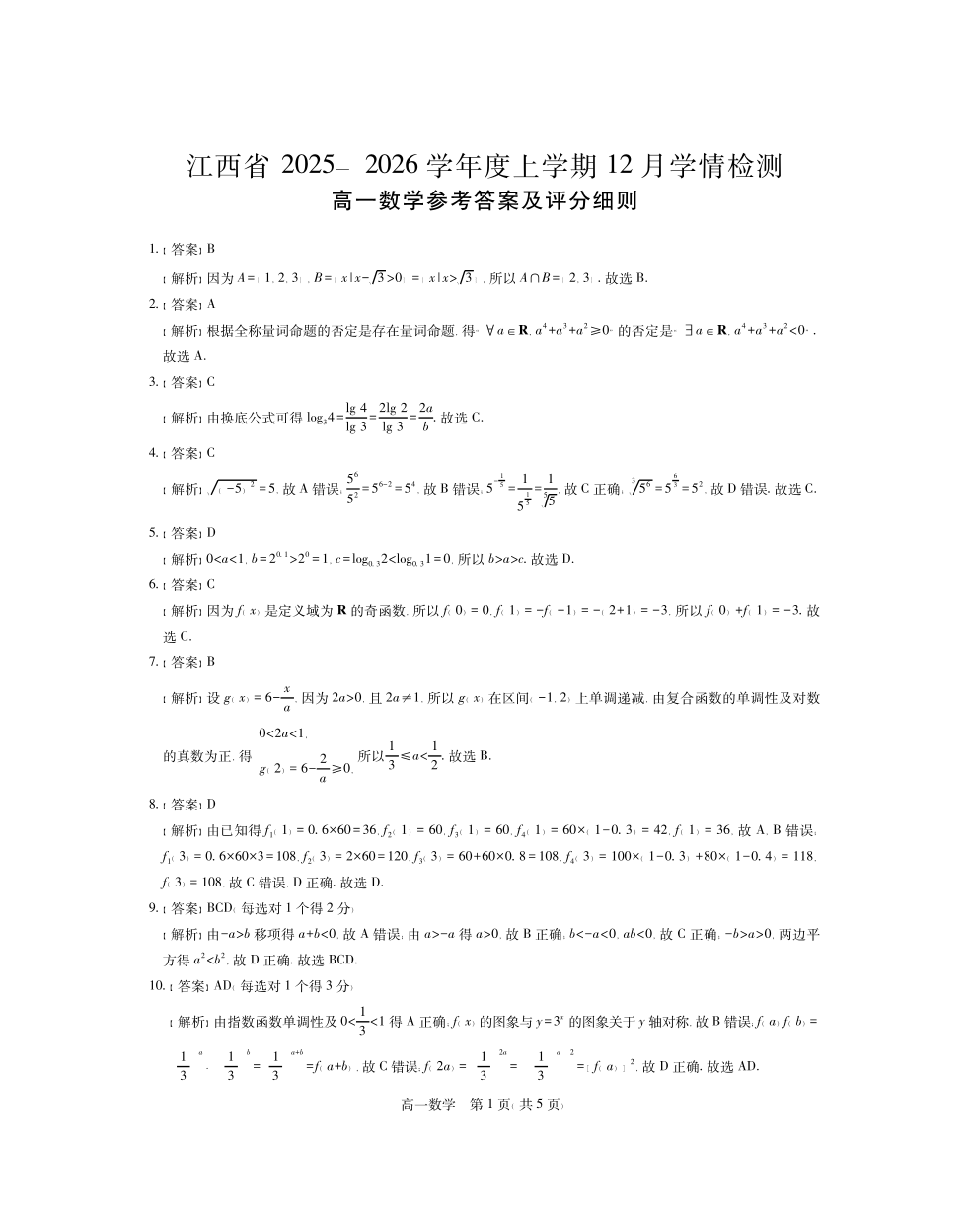 12月江西高一·数学答案.pdf