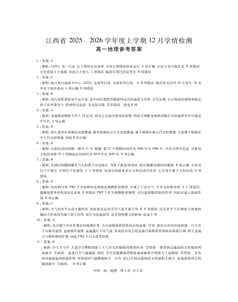 中图12月江西高一·地理答案.pdf