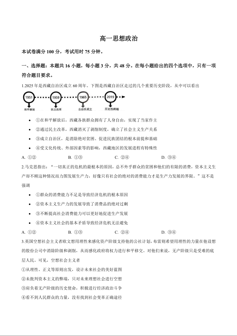 广东省揭阳市部分学校2025-2026学年高一上学期期中联考 政治试题(含答案).docx