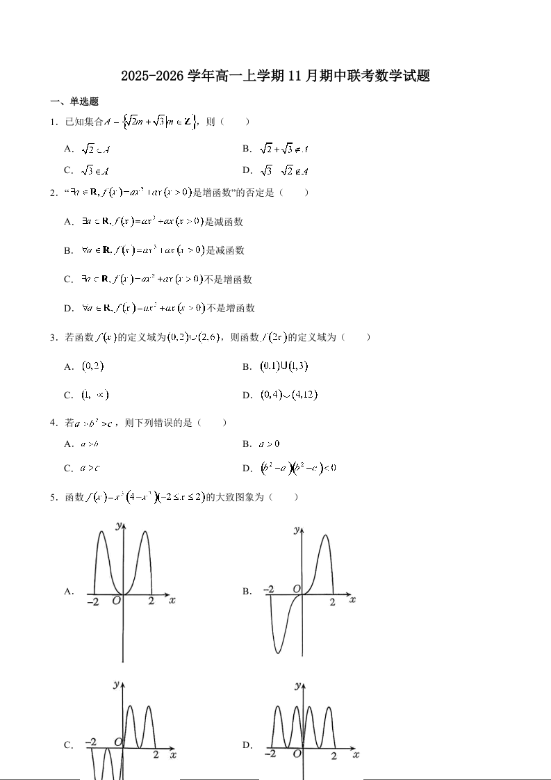 广东省揭阳市部分学校2025-2026学年高一上学期期中联考 数学试题(含答案).docx