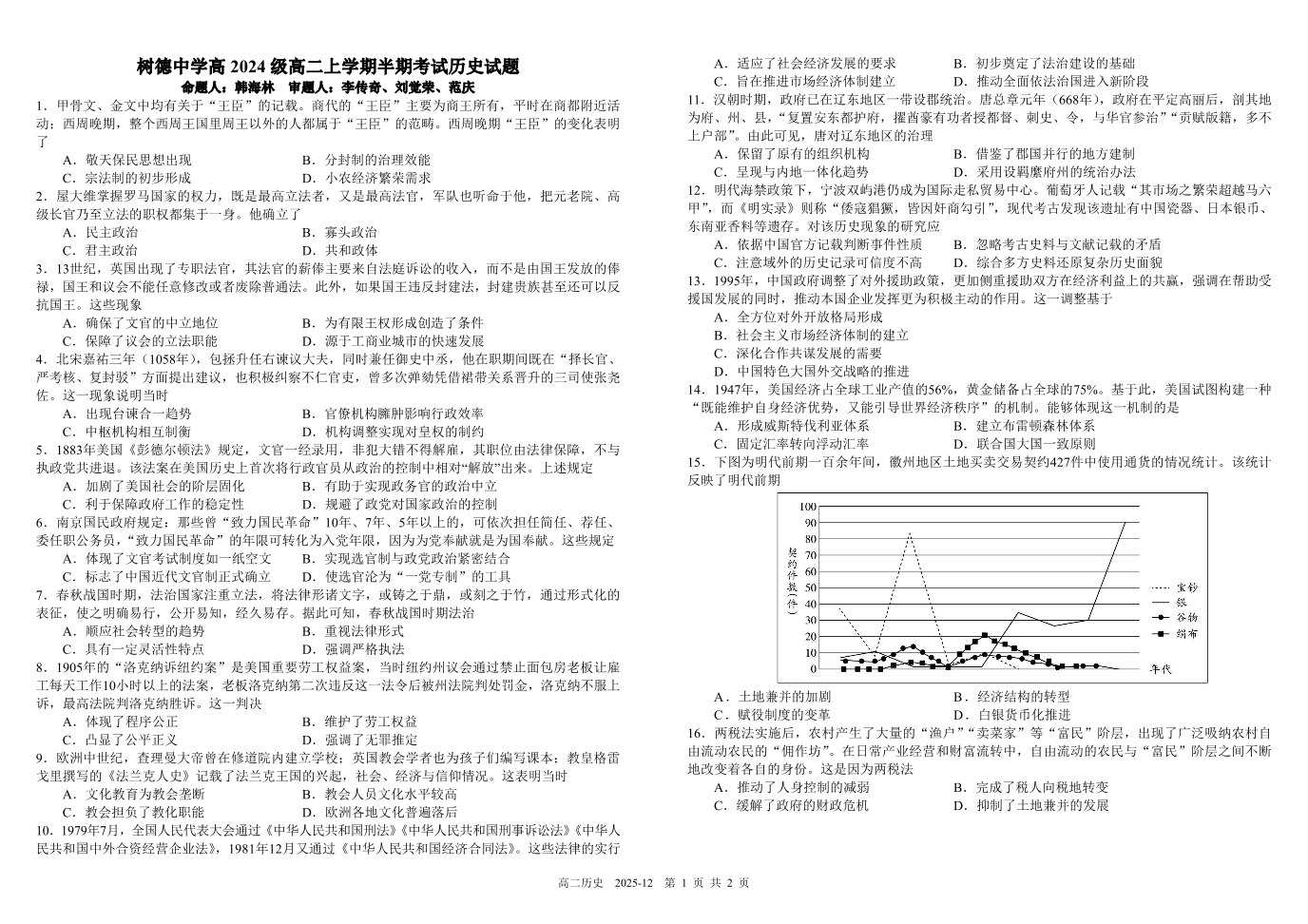 树德中学高2024级高二上学期半期考试 历史试题(含答案).pdf