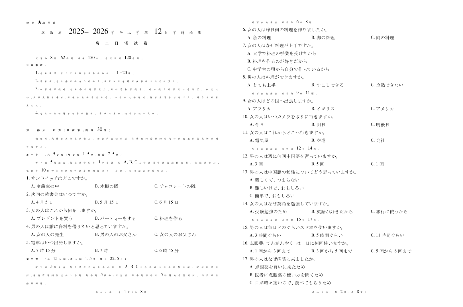 12月江西高二·日语.pdf