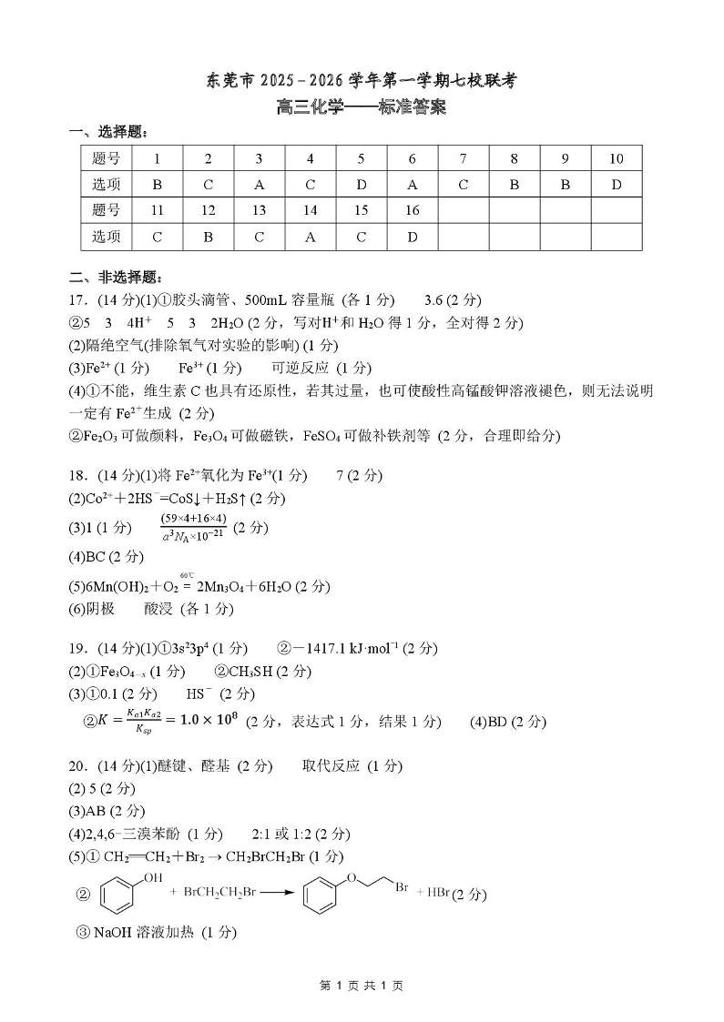 东莞市2025-2026学年第一学期七校联考高三试题 化学答案.pdf