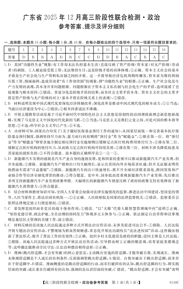 广东省2025年12月高三阶段性联合检测 政治答案.pdf