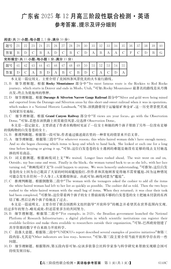 广东省2025年12月高三阶段性联合检测 英语答案.pdf