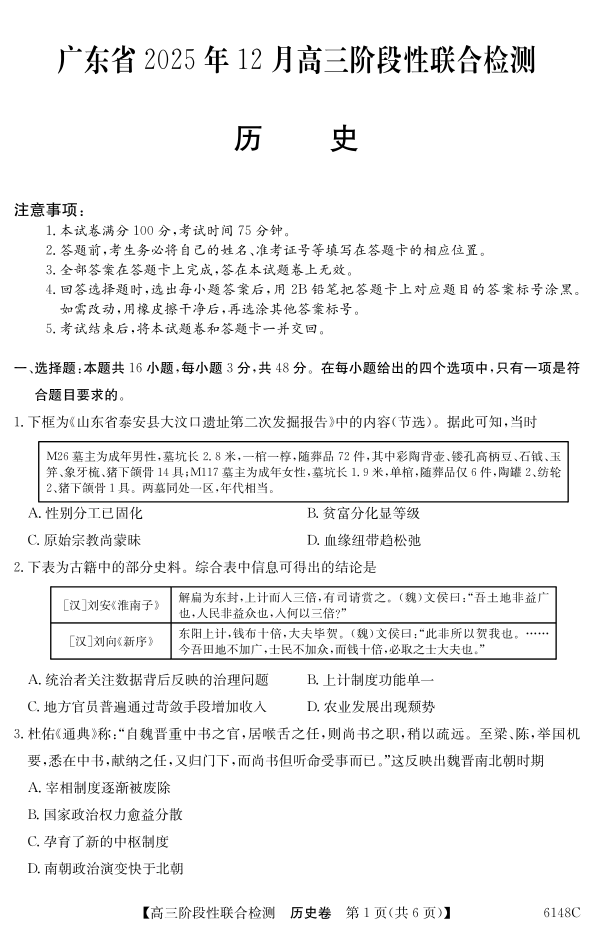 广东省2025年12月高三阶段性联合检测 历史.pdf
