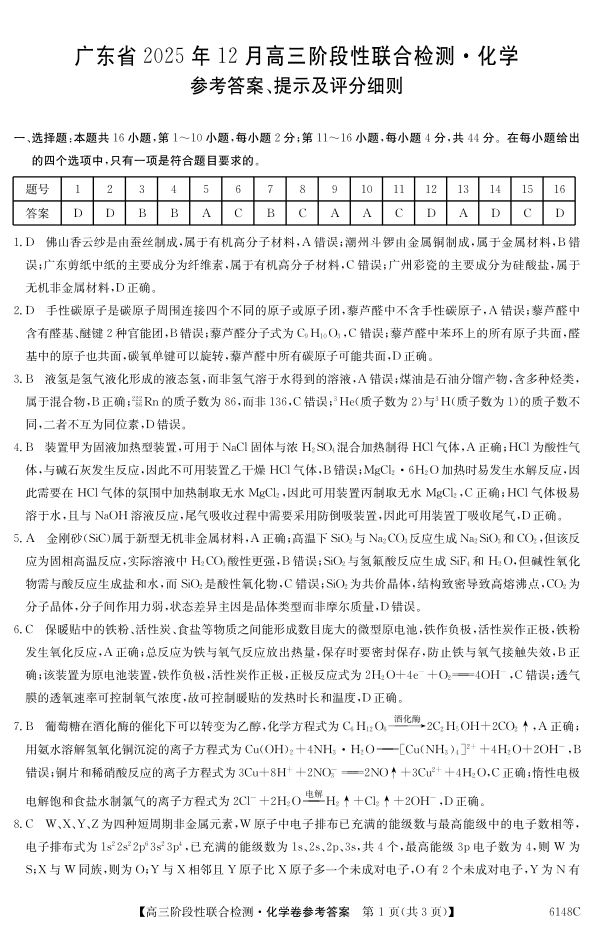 广东省2025年12月高三阶段性联合检测 化学答案.pdf