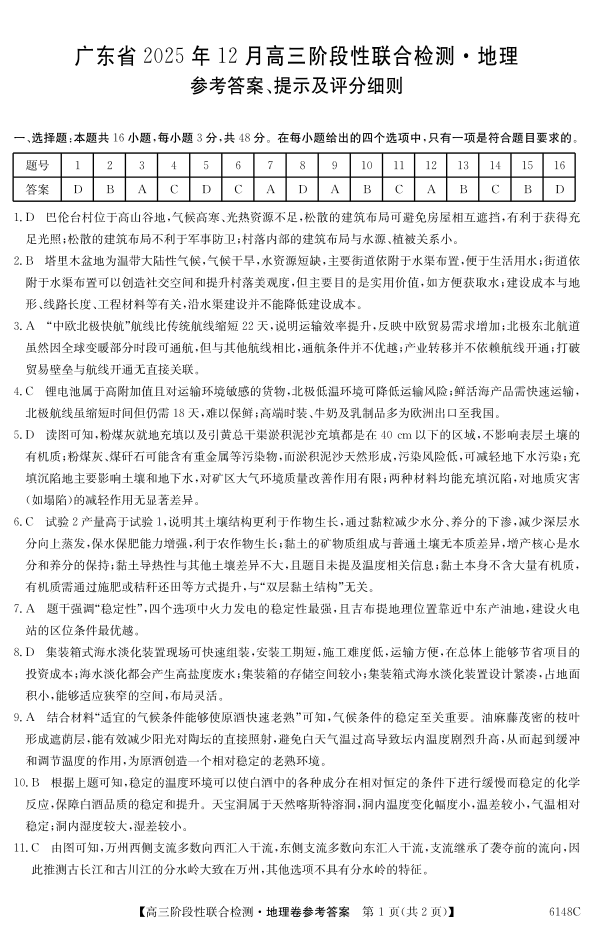 广东省2025年12月高三阶段性联合检测 地理答案.pdf