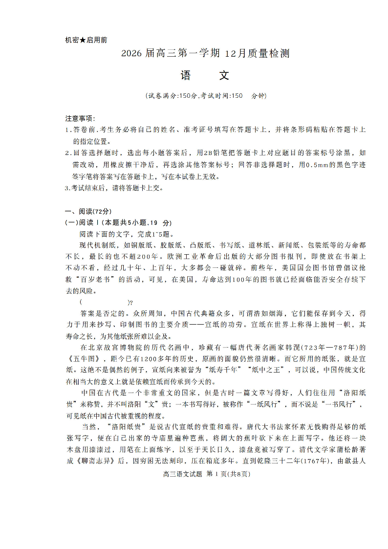 华师联盟2026届高三第一学期12月质量检测 语文试题(含答案).pdf