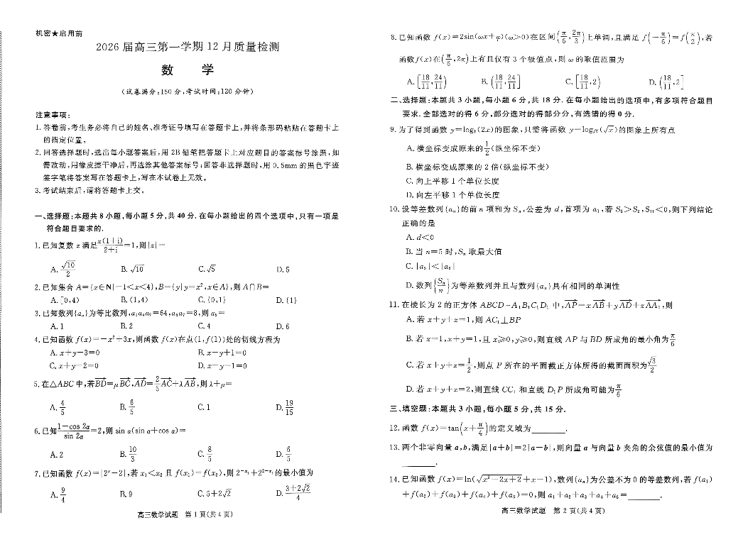华师联盟2026届高三第一学期12月质量检测 数学试题(含答案).pdf