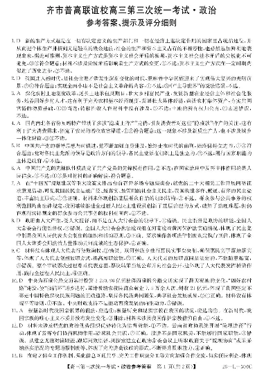 齐市普高联谊校高三第三次统一考试 政治答案.pdf