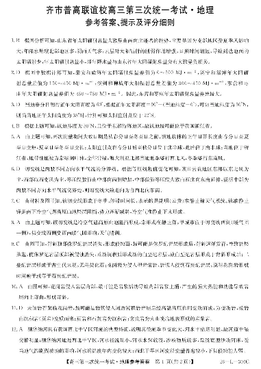 齐市普高联谊校高三第三次统一考试 地理答案.pdf
