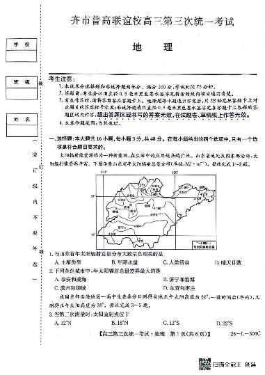 齐市普高联谊校高三第三次统一考试 地理.pdf