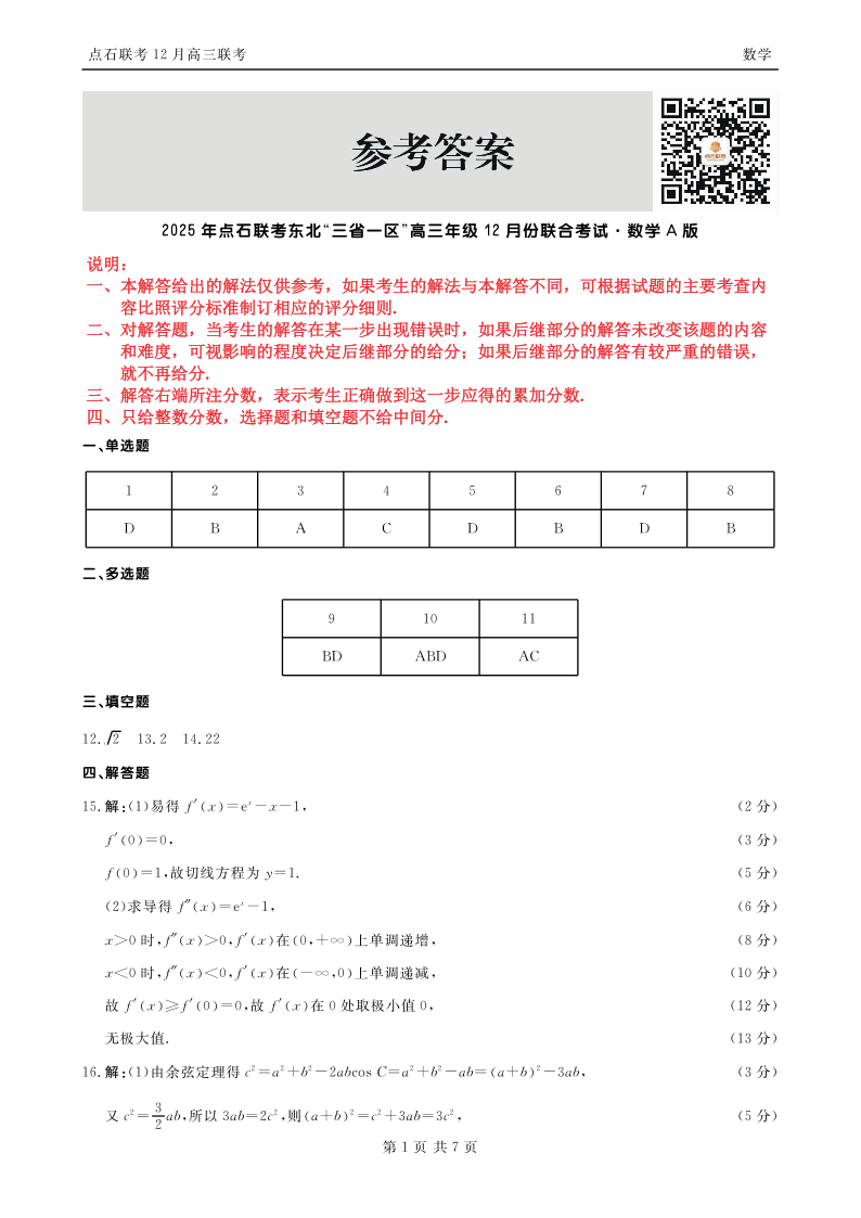 2025年点石联考东北“三省一区”高三年级12月份联合考试 数学答案.pdf
