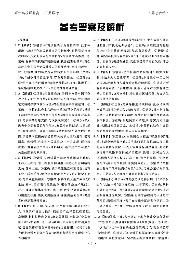 辽宁省名校联盟2025年高三12月份联合考试 政治答案.pdf