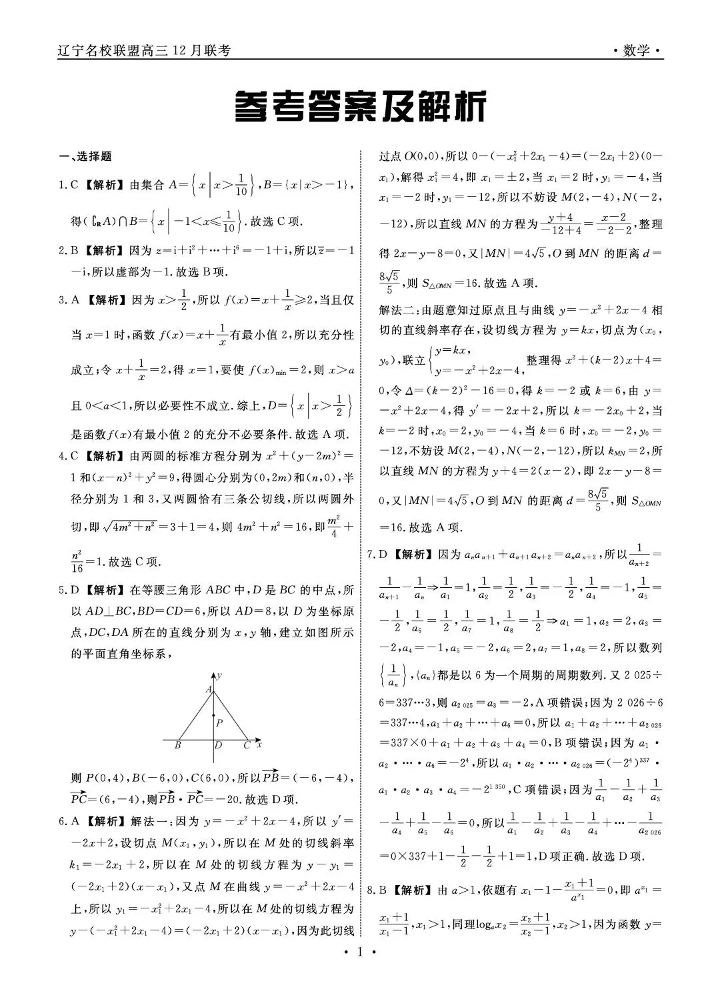 辽宁省名校联盟2025年高三12月份联合考试 数学答案.pdf