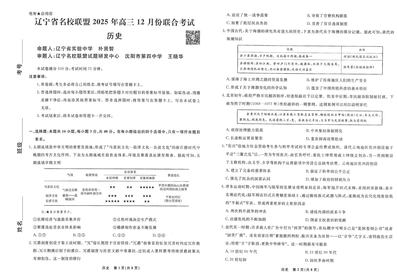 辽宁省名校联盟2025年高三12月份联合考试 历史.pdf