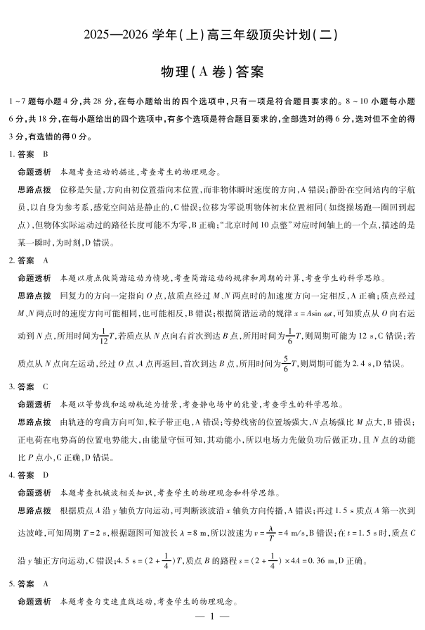 物理A卷-高三顶尖计划(二)详细答案.pdf