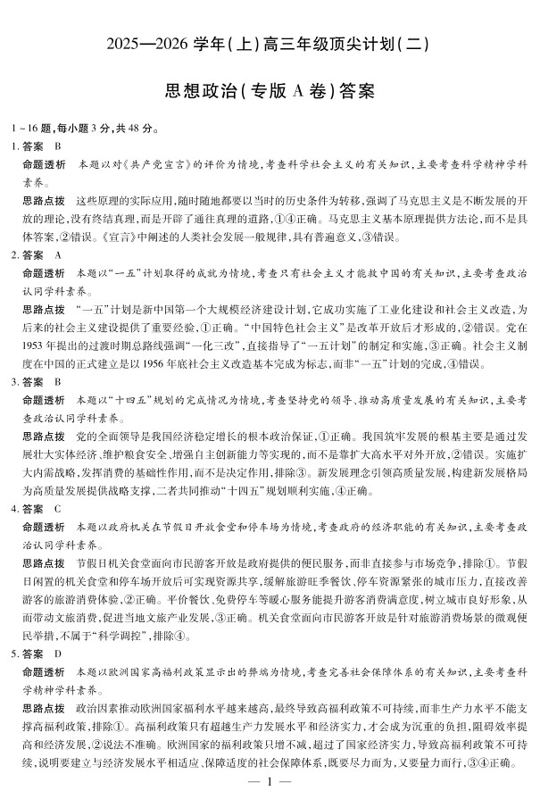 思想政治专版A卷-高三顶尖计划(二)详细答案.pdf