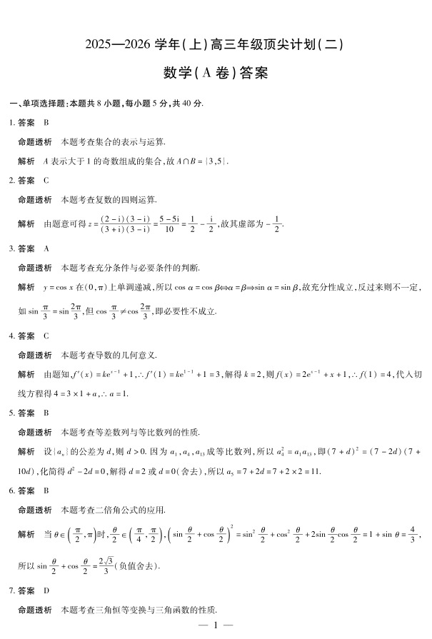 数学A卷-高三顶尖计划(二)详细答案.pdf