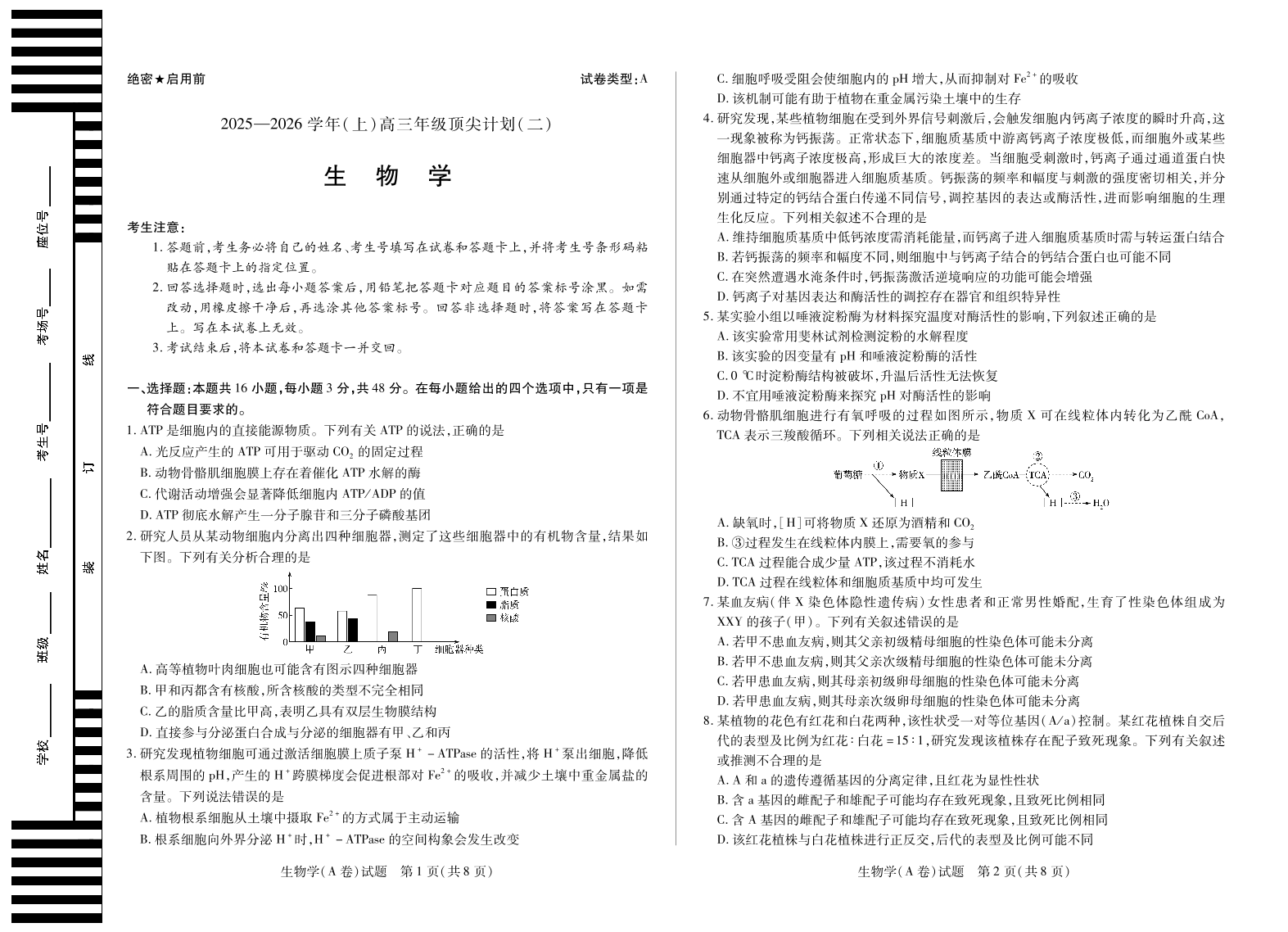 生物学A卷 天一大联考·河南省2025-2026学年(上)高三年级顶尖计划(二).pdf