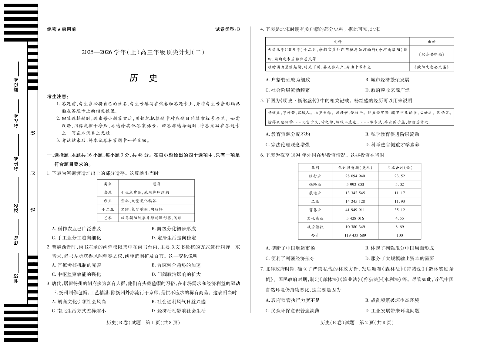 历史B卷 天一大联考·河南省、陕西甘肃省2025-2026学年(上)高三年级顶尖计划(二).pdf