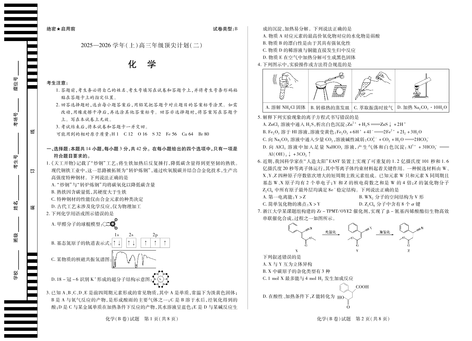 化学B卷 天一大联考·河南省、陕西甘肃省2025-2026学年(上)高三年级顶尖计划(二).pdf