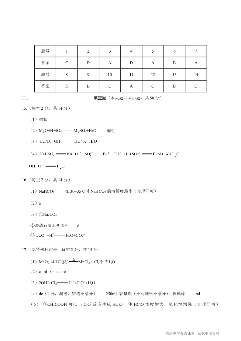 云南省昭通一中教研联盟2025-2026学年高一上学期期中考试 化学(A)答案.docx