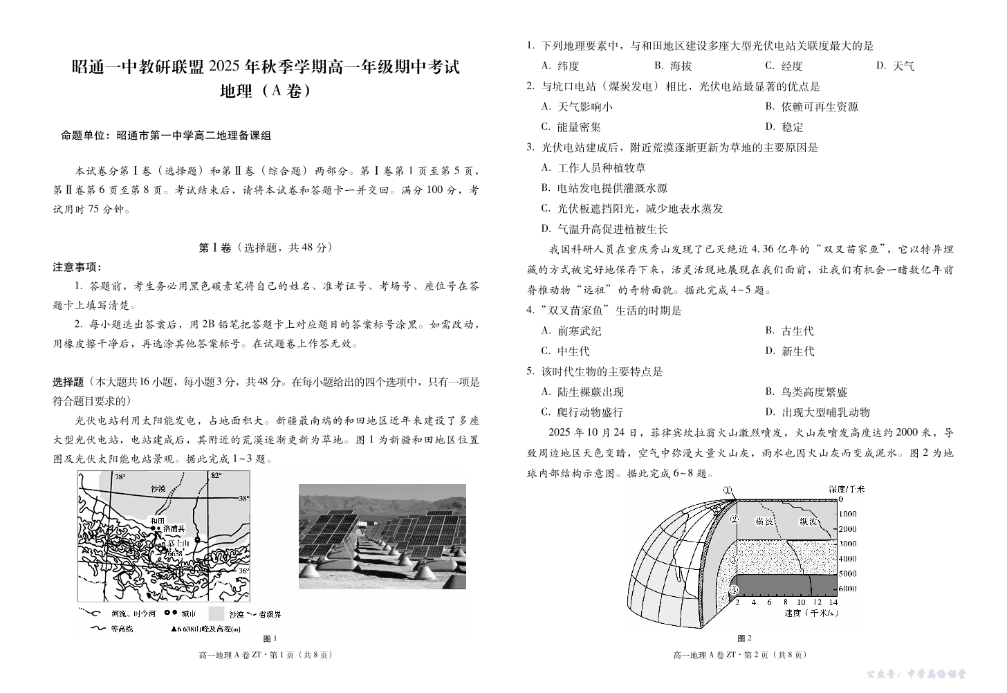 云南省昭通一中教研联盟2025-2026学年高一上学期期中考试 地理(A).pdf