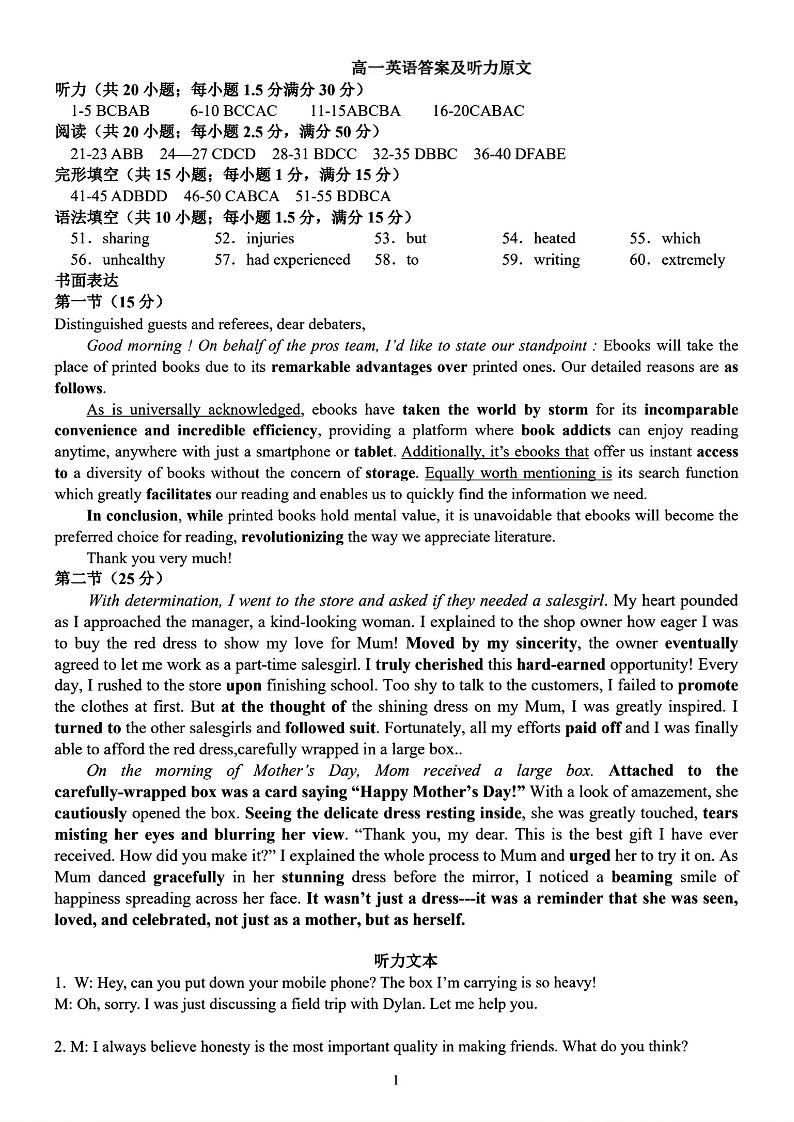 南阳一中秋期高一年级12月月考 英语答案.pdf