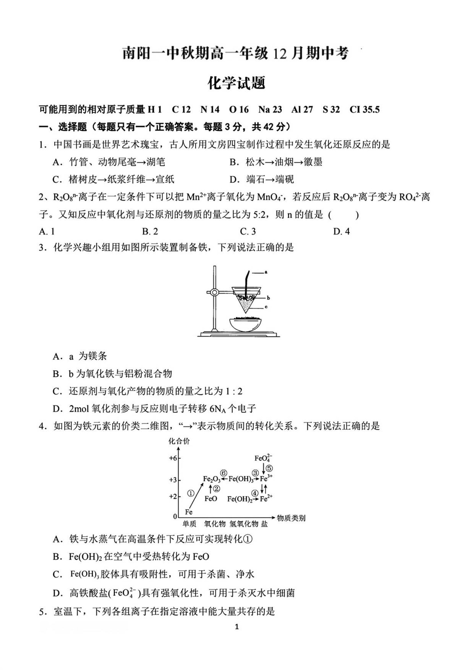 南阳一中秋期高一年级12月月考 化学.pdf