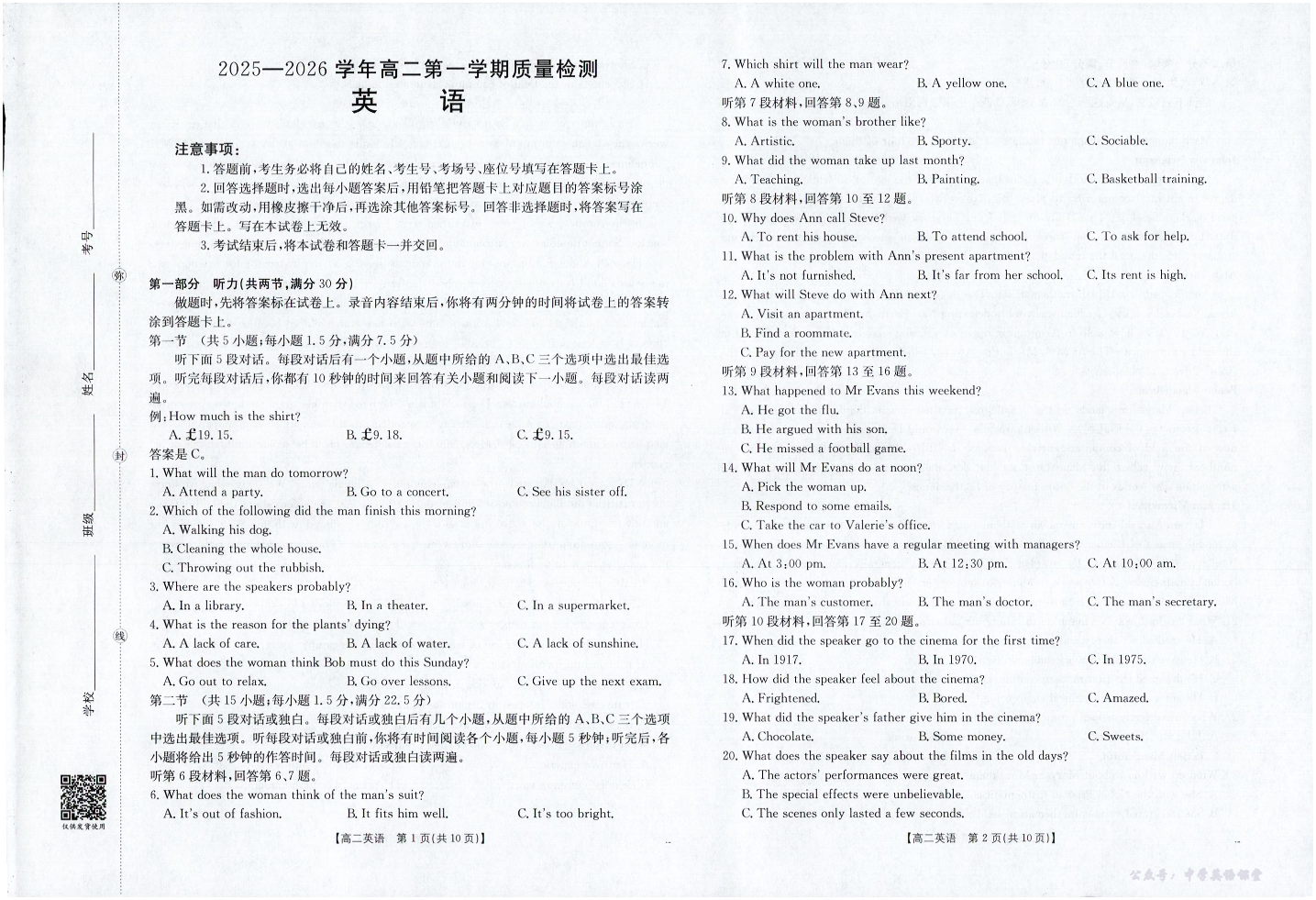 南平市2025-2026学年高二第一学期质量检测 英语.pdf