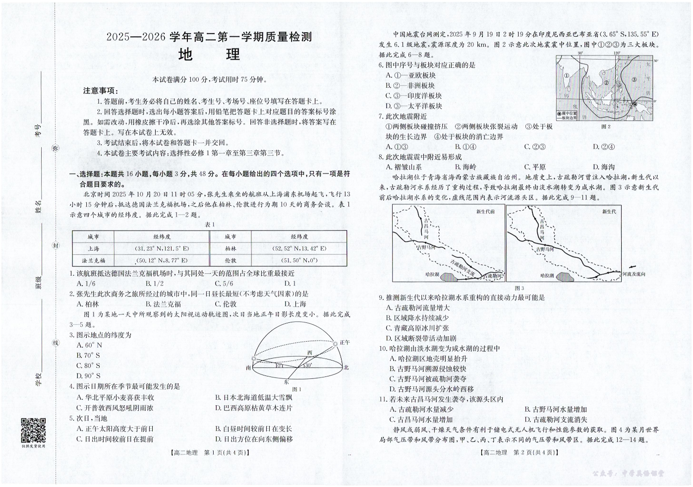 南平市2025-2026学年高二第一学期质量检测 地理.pdf